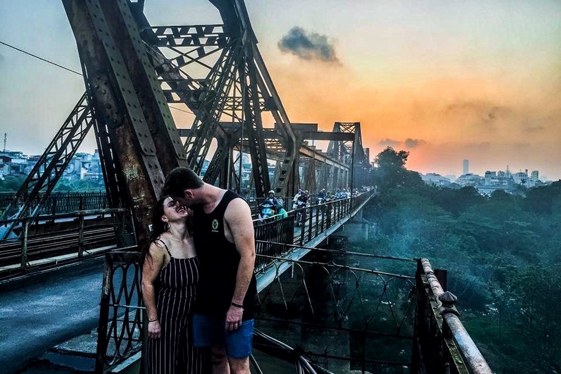 - Crossing and watching the sunset on the historical and legendary Long Bien bridge.